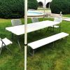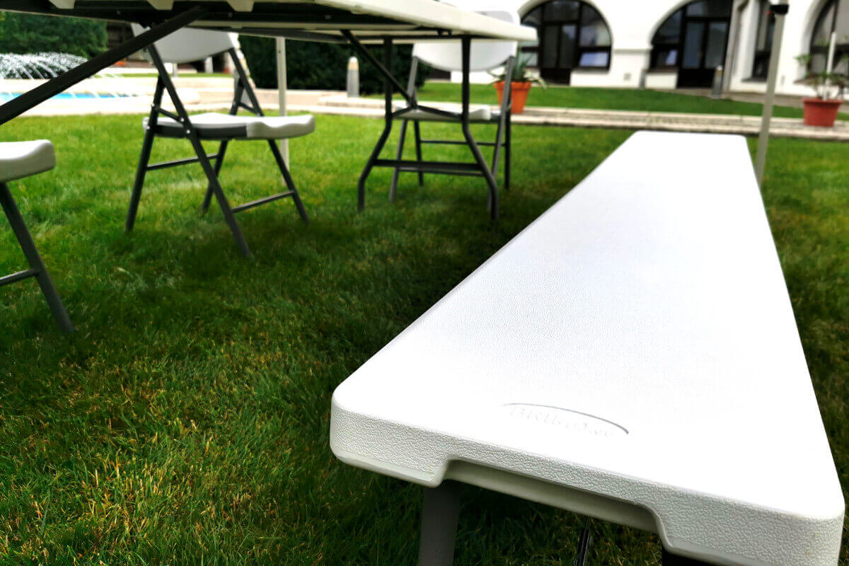 - Băncile pliabile ca vremea, plasticul durabil nu își schimbă proprietățile, iar vopseaua pulbere de înaltă calitate a pieselor din oțel este o protecție perfectă împotriva ruginii.