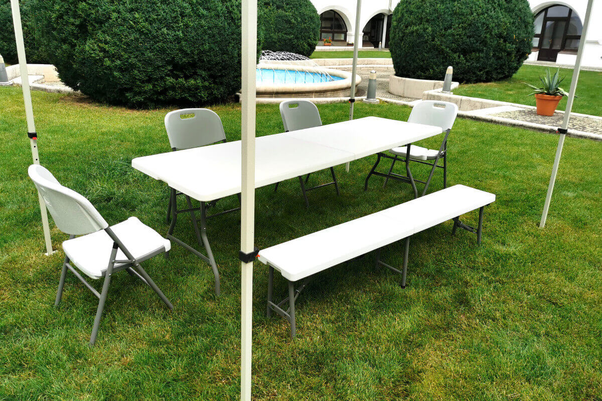 - 4 persoane de până la 300 kg pot încăpea confortabil pe banca pliabilă.