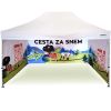 Indiferent dacă este vorba despre un cort mic de 2x2 m sau un cort publicitar mare de 4x8 m, vom imprima pe el imagini colorate, elemente grafice sau vom acoperi întreaga suprafață a cortului cu un model la alegere.