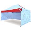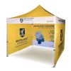Corturi publicitare cu imprimare digitală prin sublimare. Imprimarea apare printr-un proces chimic în care cerneala, sub influența temperaturii ridicate, pătrunde direct în structura materialului. Logo, text sau orice tip de grafică pe partea interioară sau exterioară a cortului, conform dorințelor clientului.