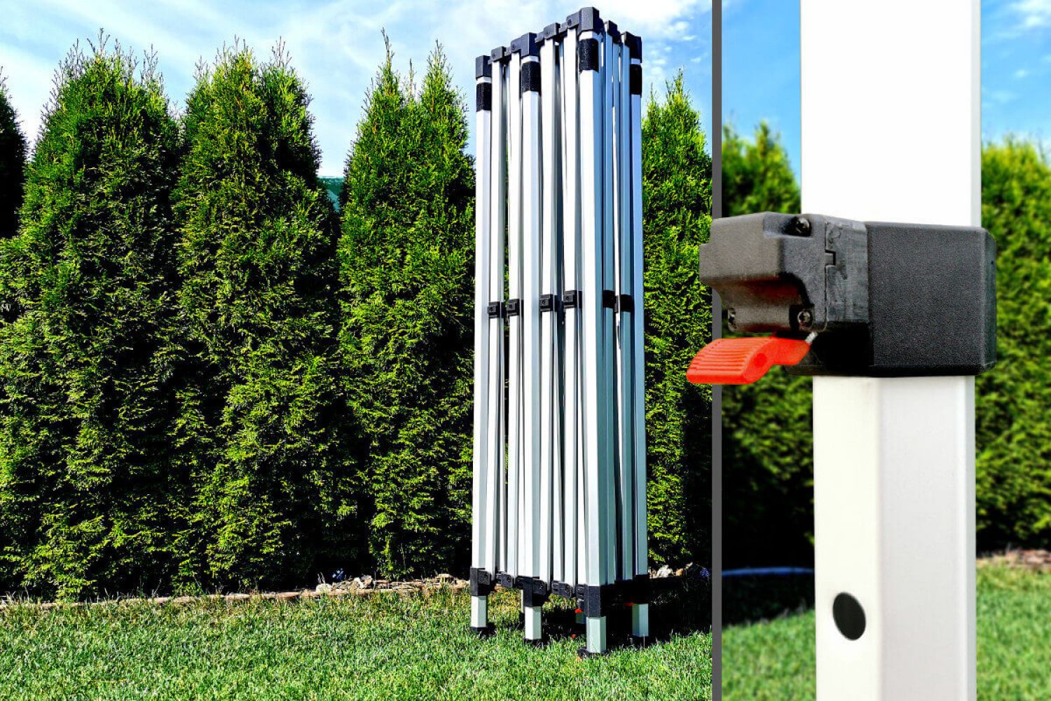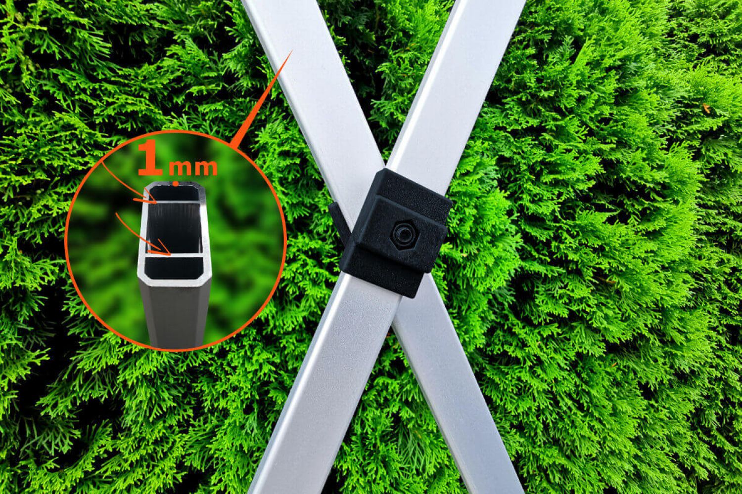 - Model Exclusive din aluminiu utilizat la vânt de până la 60 km/h. Picioare cu orificii pentru ancorare în sol cu ajutorul țărușilor - gratuit!