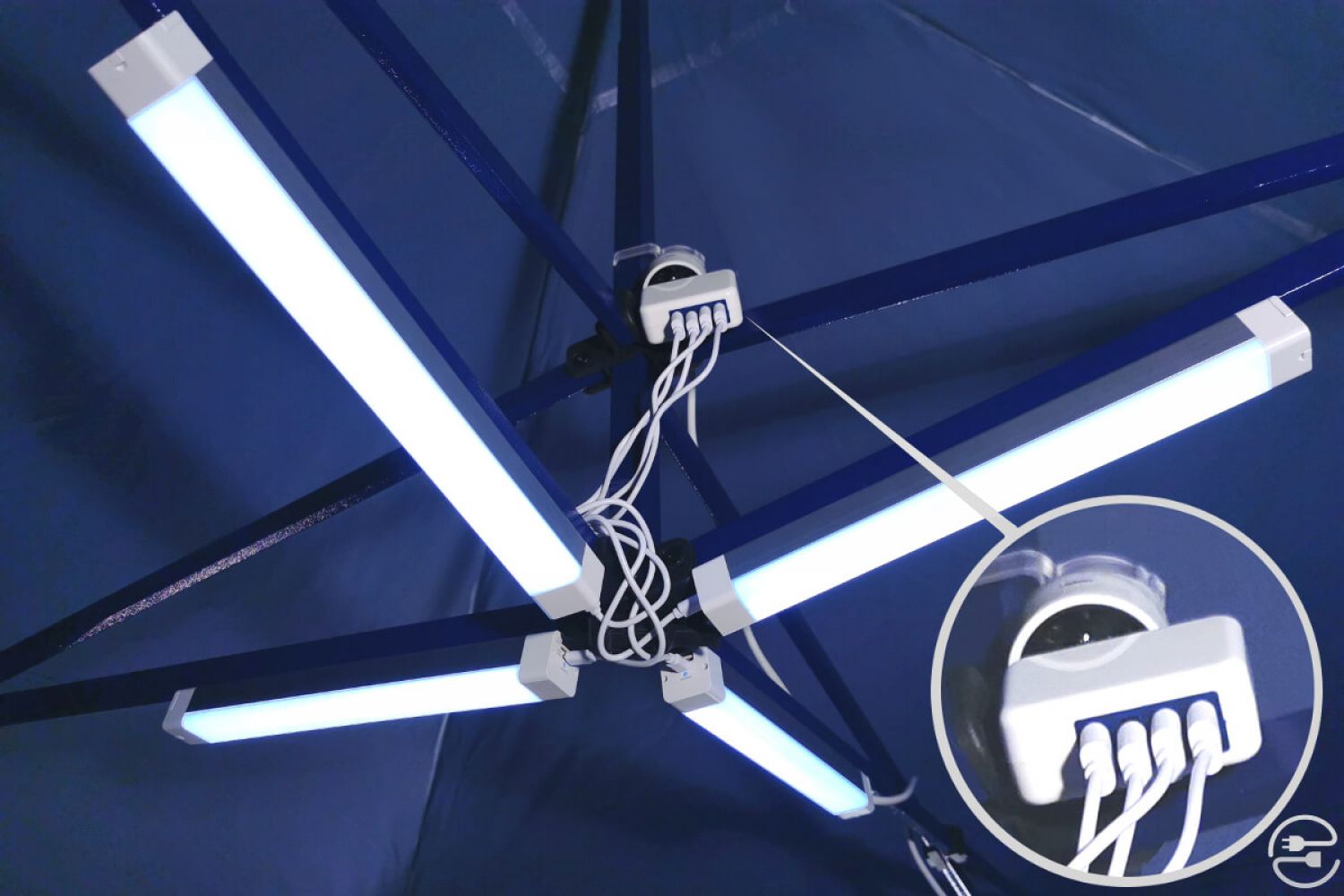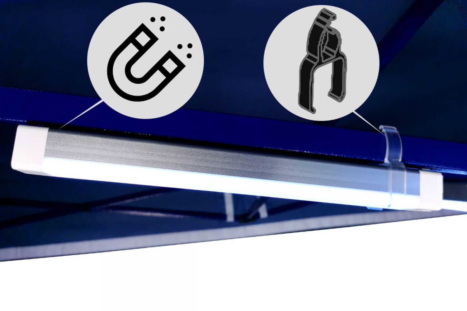 - Atașare la cadrul cortului cu un magnet sau clemă.