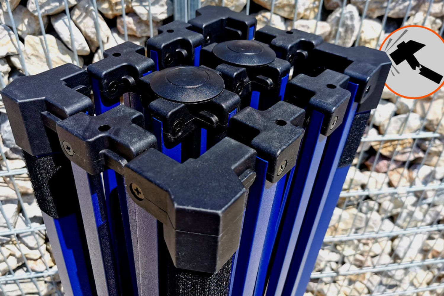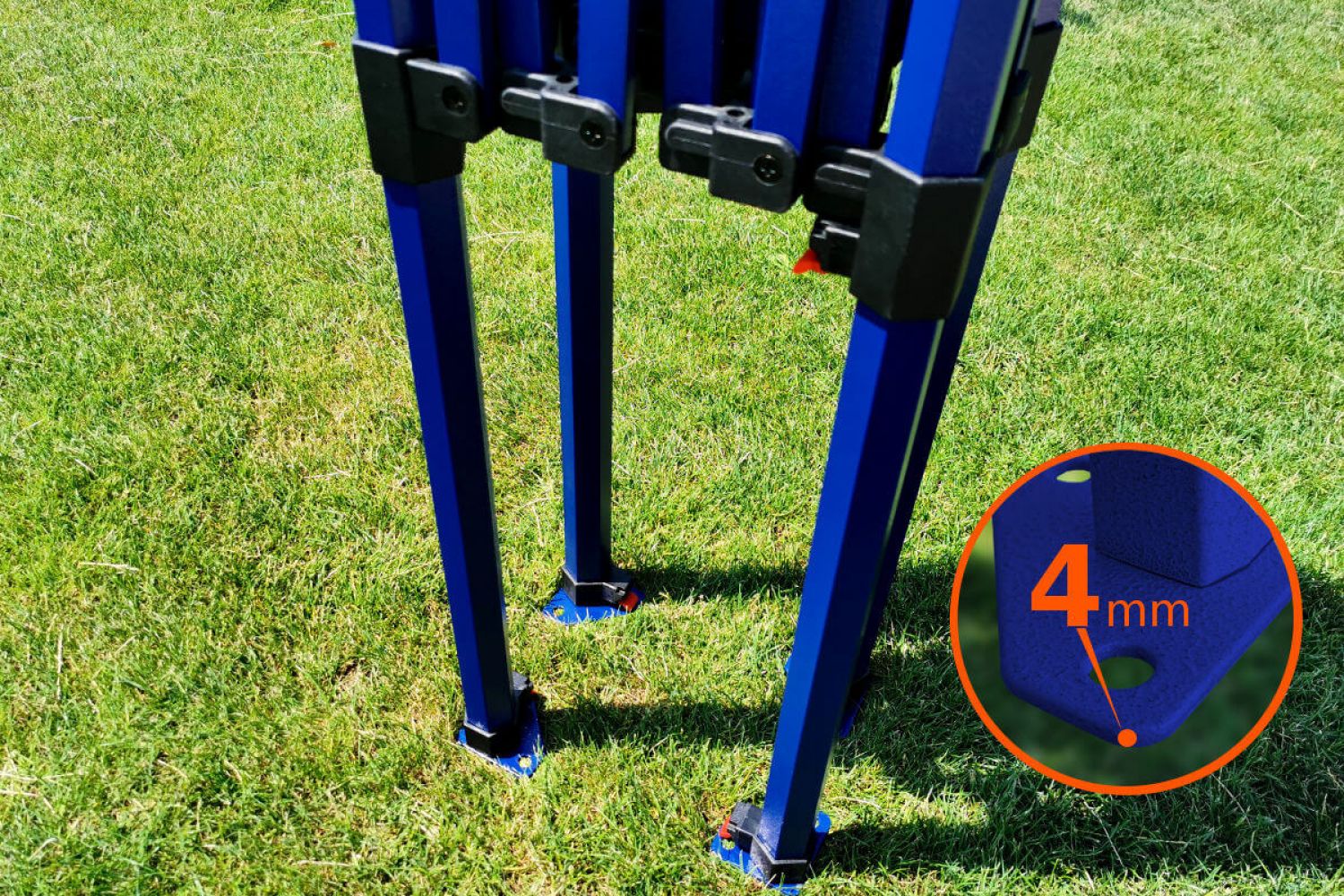 În plus, cadrul Exclusive din oțel este robust, stabil și solid, astfel că nu trebuie să vă faceți griji în timpul prezentării sau vânzării produselor. În cazul vântului puternic și a ancorării corecte, veți experimenta confortul pe care nu l-ați avea dacă ați cumpăra corturi mai ieftine de pe piață. Confortul acesta în ceea ce privește stabilitatea și rapiditatea de asamblare va fi apreciat nu numai de dumneavoastră, ci și de clienții dumneavoastră. Culoarea calitativă albastru închis a cadrului protejează împotriva coroziunii și conferă imaginii dvs. o notă de calitate.